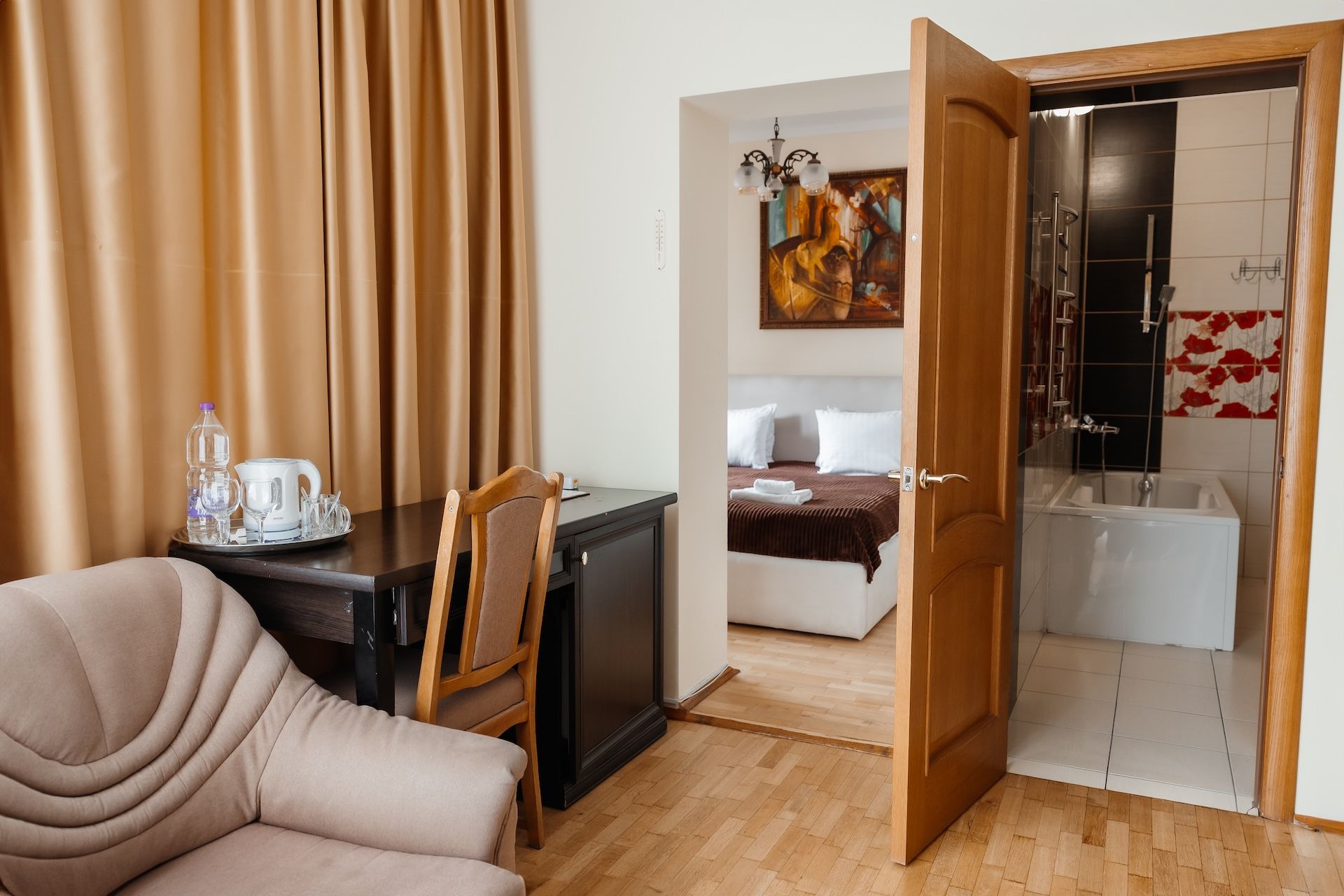 переглянути ще 12 фото Люкс з ванною та балконом та з видом на місто 1300 грн / доба square_foot 33 м2 meeting_room 2 person person 1 - 2 Забронювати Детальніше arrow_forward Люкс