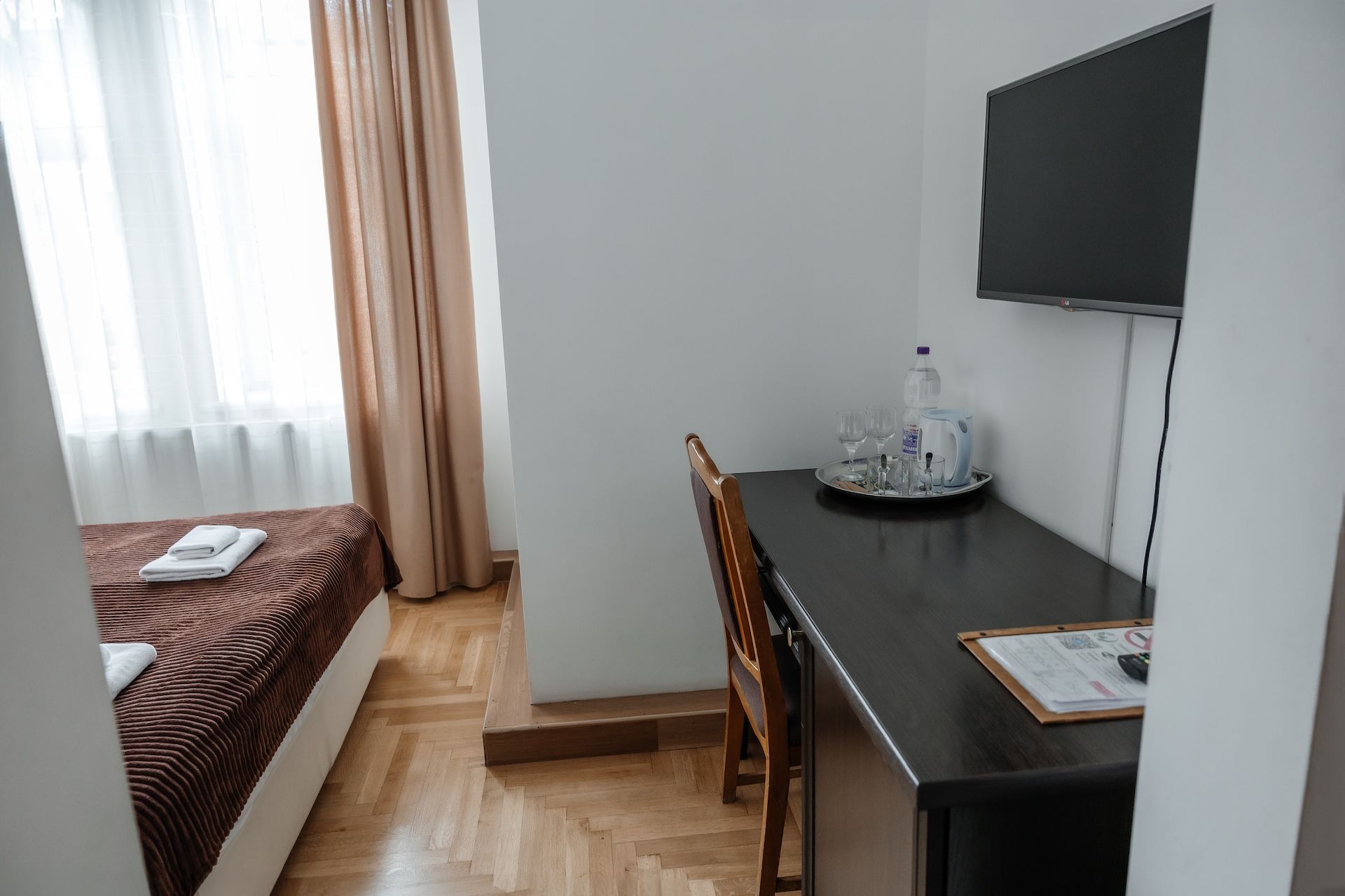 переглянути ще 8 фото Напівлюкс з балконом 1000 грн / доба square_foot 24 м2 meeting_room 1 person person 1 - 2 Забронювати Детальніше arrow_forward Напівлюкс